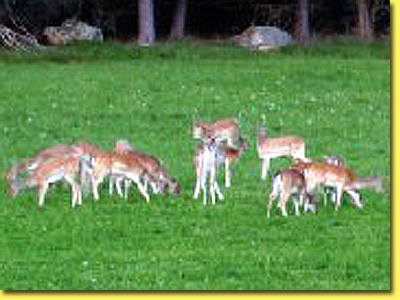 Unser Damwildgehege liegt idyllisch umgeben von Wald und Wiesen. Fernab von Straßenlärm und Abgasen können die neugeborenen Kälber heranwachsen.