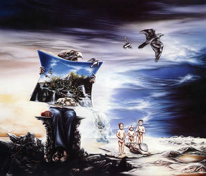 The eagle, the German heraldic bird, holding nature symbolically in its firm grip, does not see the alkaline confrontation..